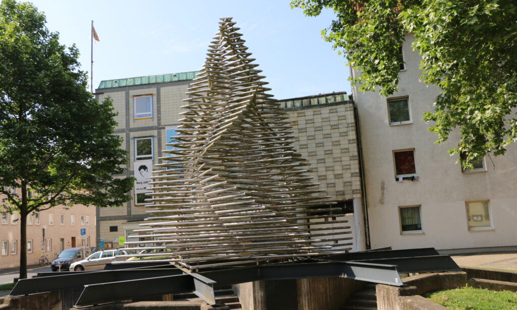 Platz der Synagoge. En este lugar de Göttingen, Alemania, se construyó una sinagoga en 1869. En 1938 los nazis la incendiaron la noche del 9 al 10 de noviembre de 1938. Quedó un hueco en este lugar hasta 1973, cuando se erigió este monumento conmemorativo. Creative Commons