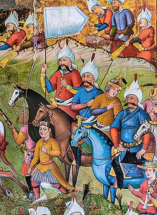 Tropas kizilbash del Shah Ismail I. Pintura de alrededor de 1647, Chehel Sotoun. Creative Commons