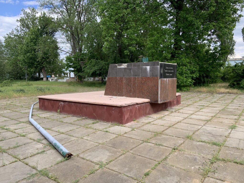 Monumento «A los héroes que dieron su vida por nuestra libertad» tras su destrucción por los ocupantes, Jersón, 2022. Foto de Mikola Homanyuk