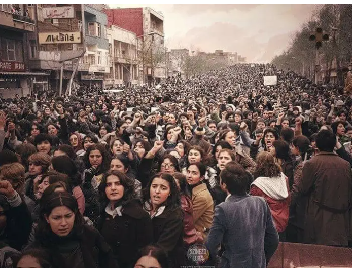 La base social de Jomeini incluía a hombres y mujeres que se oponían al trabajo de las mujeres fuera del hogar. Así, cuando Jomeini llegó al poder, promulgó diversas políticas, como el uso obligatorio del velo, la expulsión de las mujeres del mercado laboral y de las universidades, entre otras. Para 1979, Irán se había modernizado hasta el punto de contar con un gran número de mujeres educadas. El primer grupo que participó en una protesta masiva fueron las mujeres iraníes, el 8 de marzo de 1979, en reacción al llamamiento de Jomeini para que se usara el hiyab obligatoriamente. De hecho, tuvieron éxito y Jomeini dio marcha atrás. El hiyab obligatorio se impuso tras la destitución del presidente Bani Sadr (un islamista liberal) en junio de 1981.