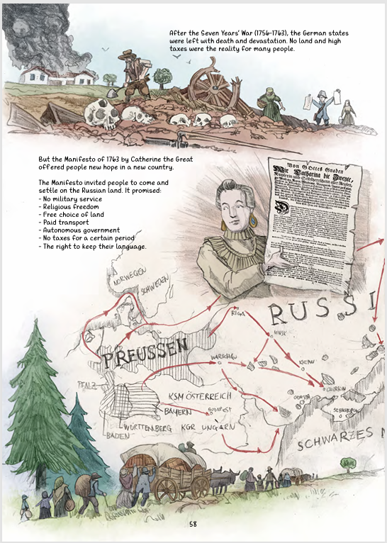 En 1763 Catalina La Grande emitió un manifiesto que invitó a personas alemanas a asentarse en el Imperio Ruso